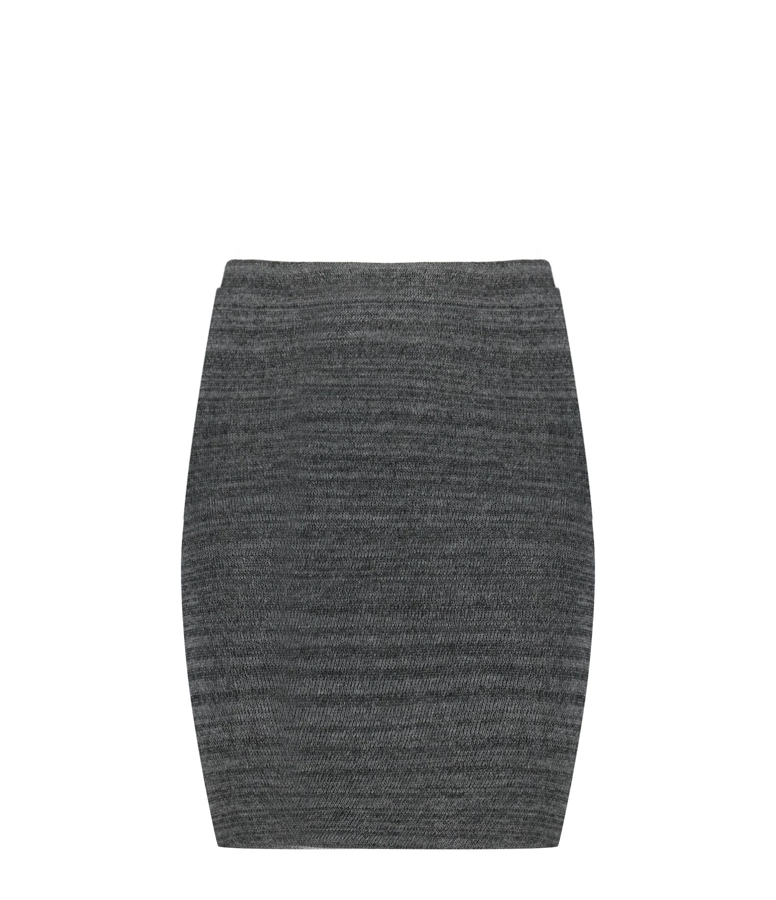 Jupe moulante à rayures grises. Taille élastiquée. Coupe moulante. Base droite.