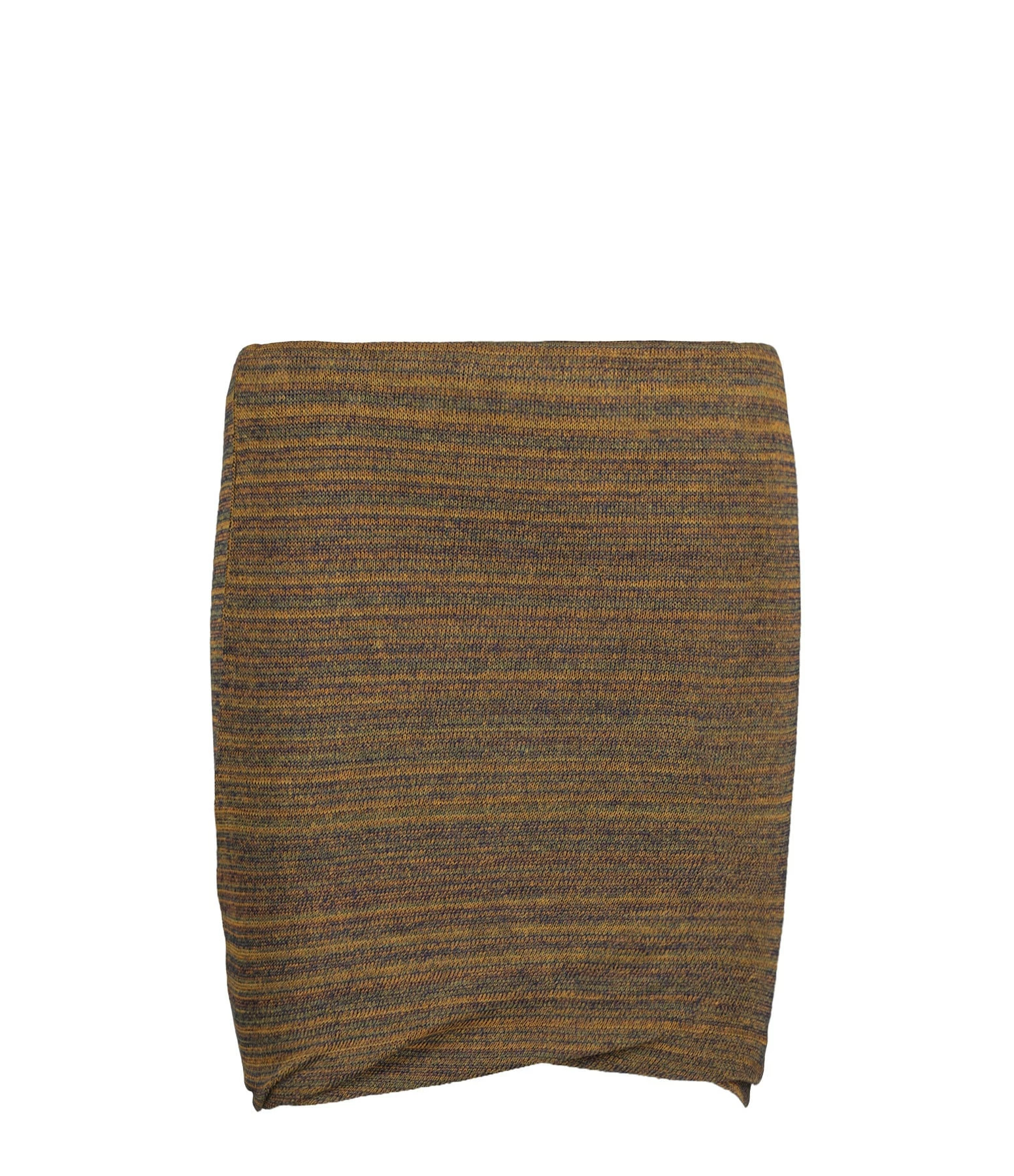 Jupe moulante à rayures marron kaki. Taille élastiquée. Coupe moulante. Base droite.