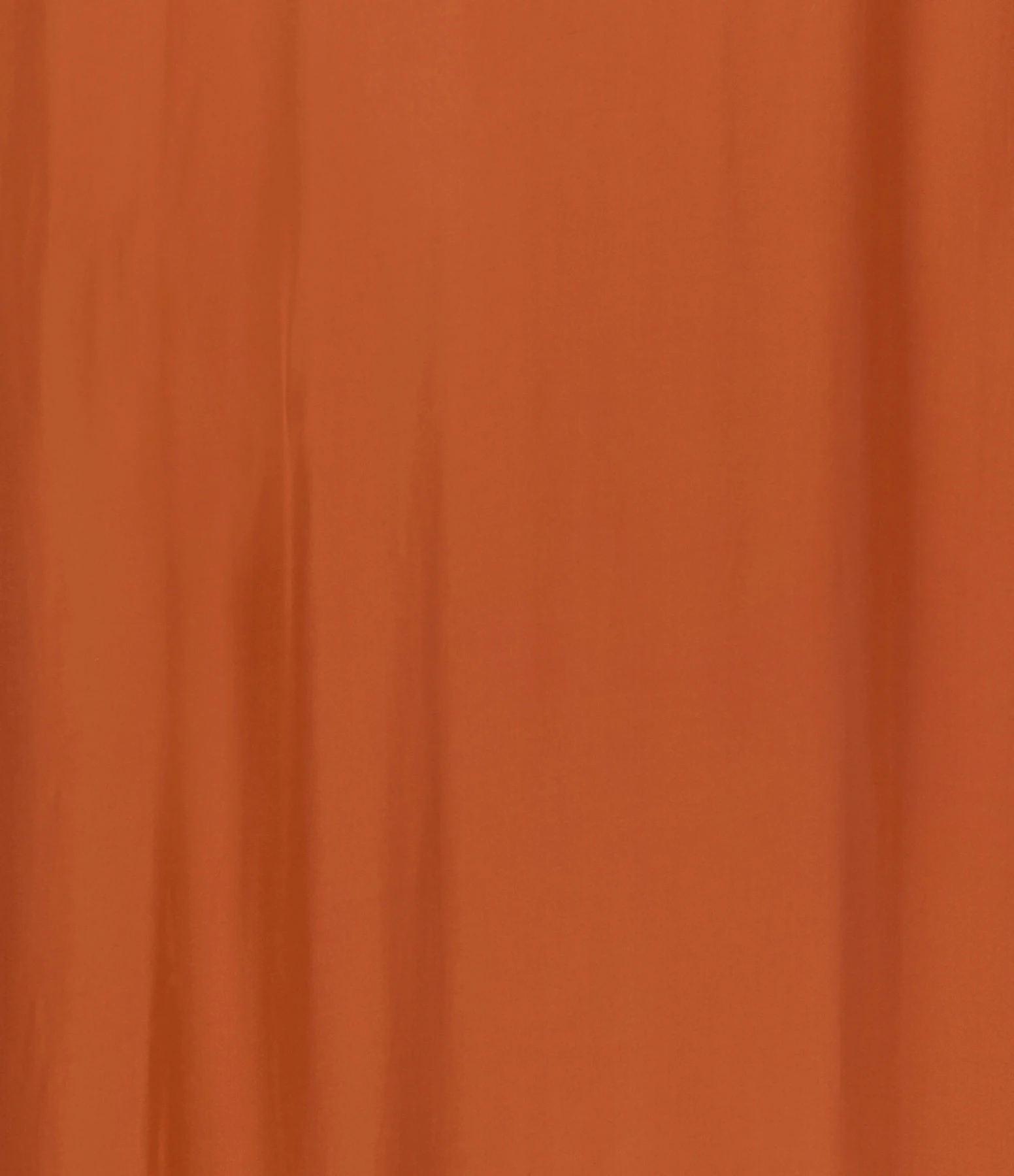 Robe longue dos nu en viscose ocre. Fines bretelles réglables. Dos nu en V avec fermeture éclair fine. Fendue sur les côtés au niveau de la cuisse. Non doublée. Coupe ample. Base droite.