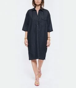 MAISON SAINT JULIEN Robe Alexandrie Longue Coton Midnight Blue